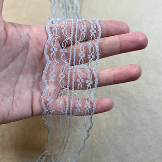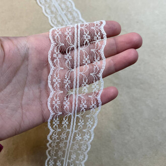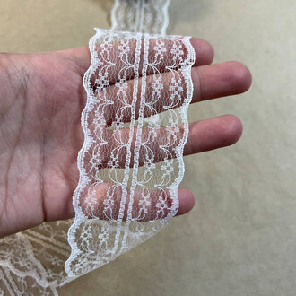 Изысканное капроновое кружево шириной 4,5 см — идеальный материал для создания утончённого декора и добавления лёгких, воздушных акцентов в ваши творческие проекты.