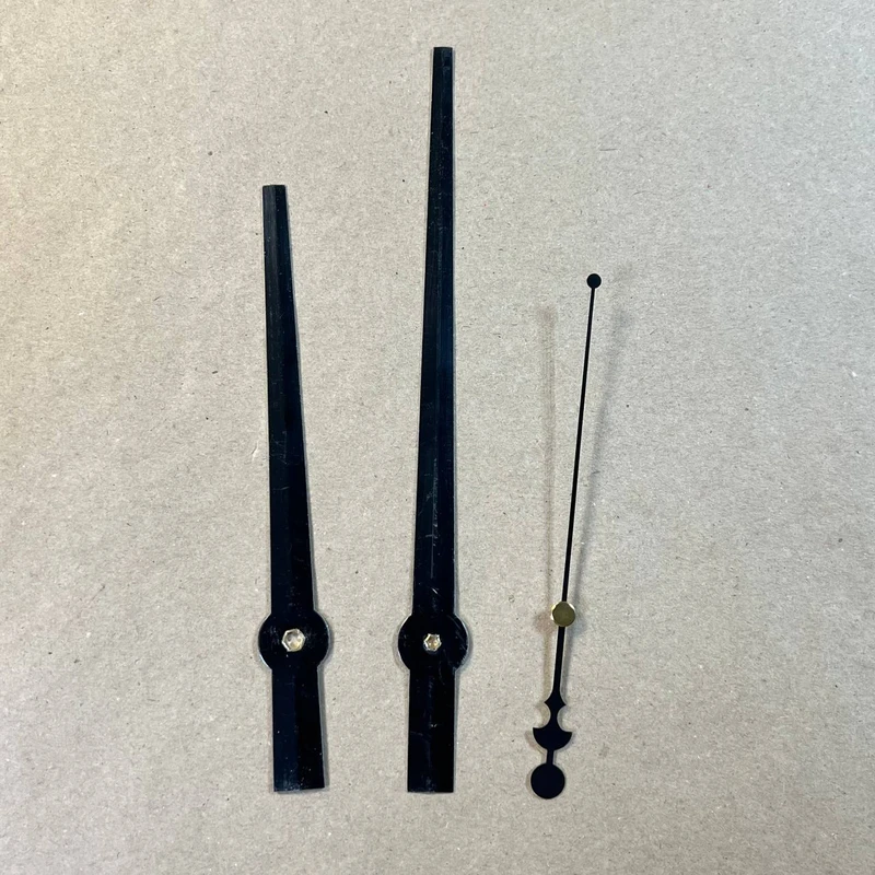 Удлинённые стрелки с графичным дизайном для создания выразительных интерьерных часов. Глубокий чёрный цвет идеально подходит для контрастных, винтажных и минималистичных композиций.