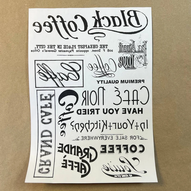 Все надписи и элементы на распечатке расположены зеркально («шиворот-навыворот») — специально для техники вживления. При наклеивании изображение встаёт нужной стороной, а после удаления верхнего слоя бумаги рисунок остаётся вживлённым в поверхность.