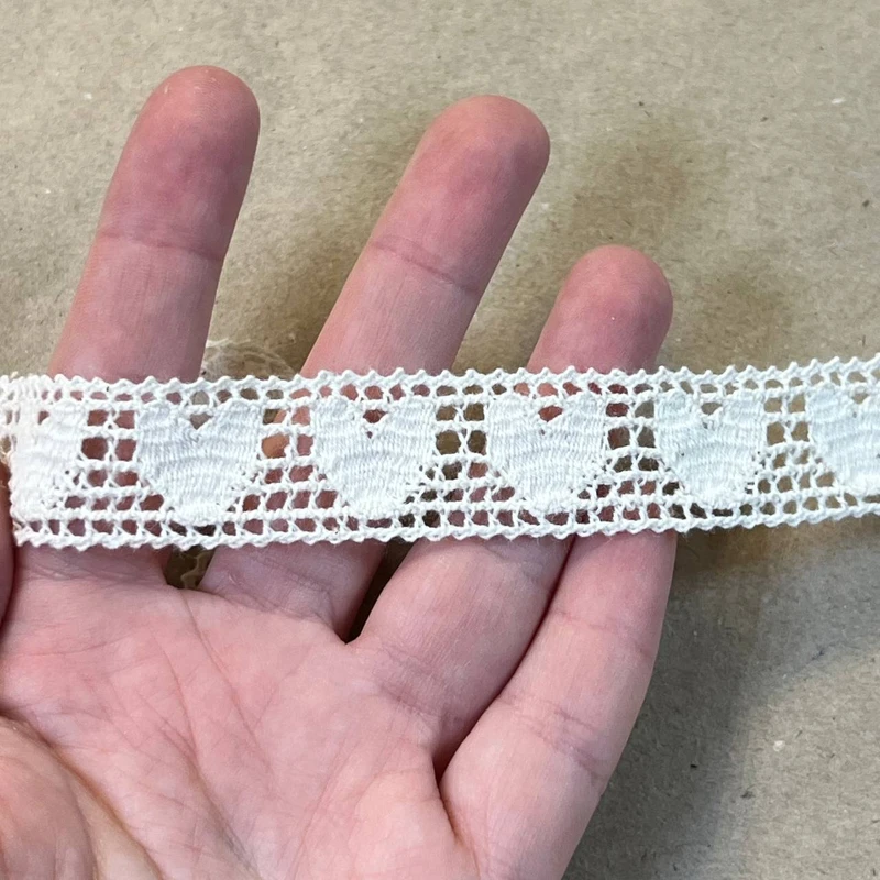 Нежное хлопковое кружево с романтичным узором в виде сердец. Подходит для создания трогательных, праздничных и подарочных композиций.