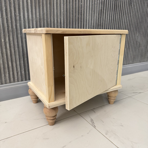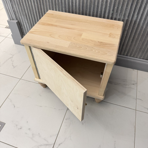 Столешница (20 мм) и ноги - массив бука. Стенки, дно и дверка (21 мм), задняя сторона (4 мм) - высококачественная березовая фанера.