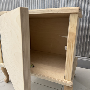 Столешница (20 мм) и ноги - массив бука. Стенки, дно и дверка (21 мм), задняя сторона (4 мм) - высококачественная березовая фанера.