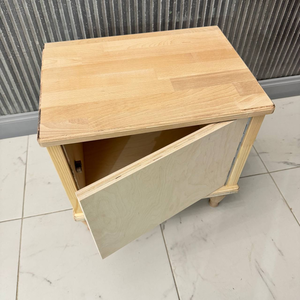 Столешница (20 мм) и ноги - массив бука. Стенки, дно и дверка (21 мм), задняя сторона (4 мм) - высококачественная березовая фанера.