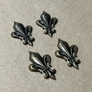 Материал - сплав металлов. Размеры накладки: высота - 4,5 см, ширина - 3 см В комплекте 4 шт.
