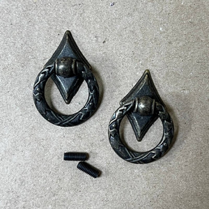 Материал - сплав металлов. Размеры ручки (кольца): высота - 4 см, ширина - 3 см, основание - 3,5 х 2 см. В комплекте 2 штуки.